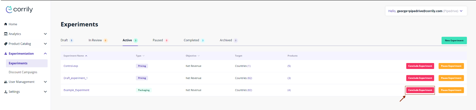 - Once satisfied, activate your experiment. The experimental prices will instantly be served to your users.
