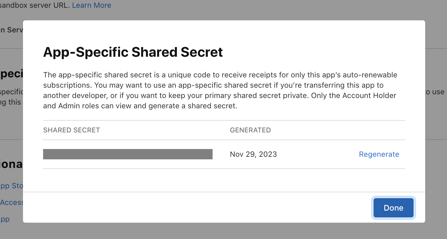 The App-Specific Shared Secret allows Corrily to connect with Apple on your behalf.